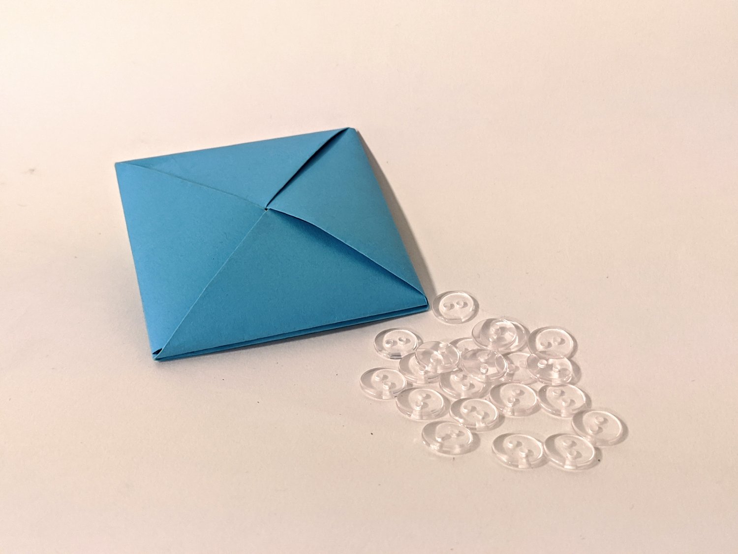 Each set provides 50 backing buttons (to get you through at least a few projects, no matter how many buttons you have on each), and comes in a folded origami pouch that can be tucked into your knitting or sewing bag and can be reused or recycled when your buttons run out.
